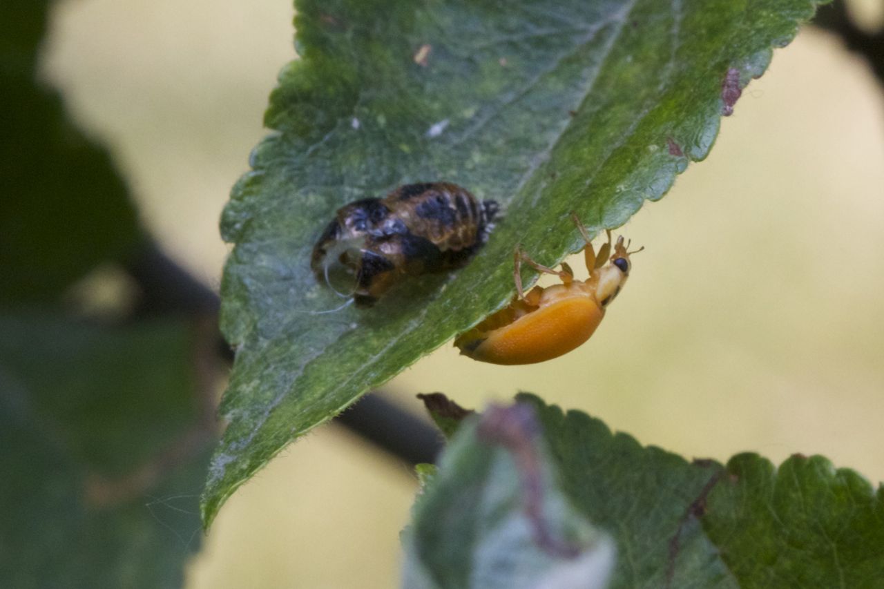 This was the scene yesterday in the garden. Dave and I just happened to be checking out the ladybird/ladybug pupae at the exact moment that one of them was emerging!