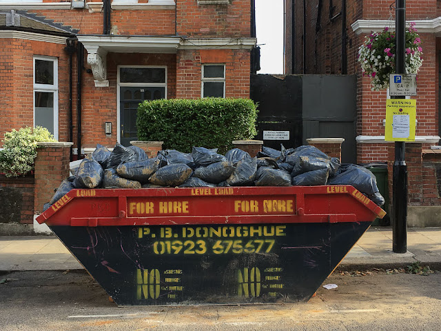 Back in West Hampstead now -- a big bin of construction debris on the street.
