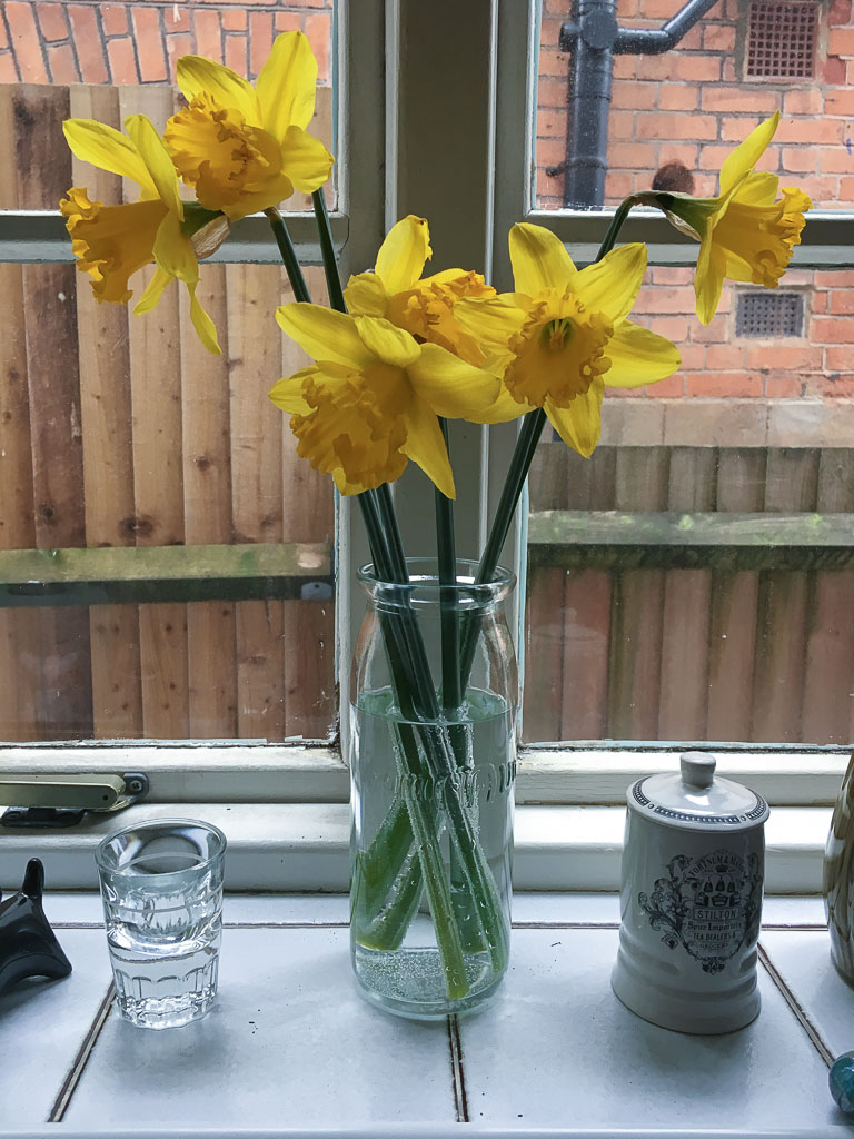 We have daffys in a jar too! We only had a handful to begin with and they were looking pretty pitiful after our high winds the other day.