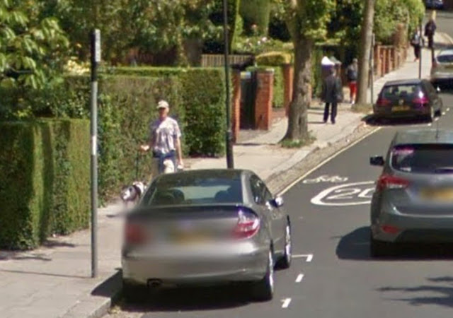 Finally, did I ever tell you that once last June, while walking Olga from Hampstead Heath back toward home, I saw the Google Streetview car drive by? It was a fair distance away and I wasn't certain it was photographing at the time -- it seemed to be moving awfully fast. But yesterday I looked on Streetview and there we are!