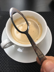 I got this when I ordered coffee at a cafe yesterday afternoon. It was obviously a stirring implement, but why the big hole?! Well, I did some research, and it turns out it's called an Espoon (I'm not sure whether that's pronounced like "e-mail" or "esteemed") and it's supposed to stir the coffee without breaking the foam seal on the top. How it's better than the simple balsa wood stick you get at Starbucks I'm not sure, but I imagine there's definitely a theory behind it. And it does look so elegant.